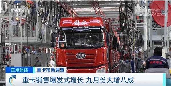 中国汽车工业协会数据显示,9月份,重型卡车销量15.1万辆,同比去年9月增长80.2%。从二季度开始,重卡销量一路走高,二季度每月同比增长率在60%以上,三季度更是保持在80%左右,全年销售有望超过150万辆。