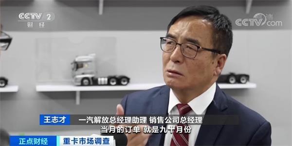 一汽解放总经理助理销售公司总经理王志才:目前的交货周期40天左右。去年九十月份,当月的订单,能够实现30天内交货。