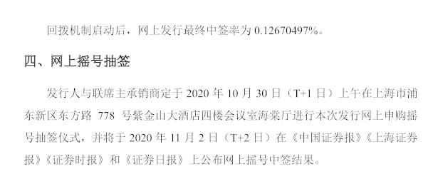 数据显示,本次网上发行有效申购户数为515.56万户,回拨机制启动后,网上发行最终中签率为0.12670497%。